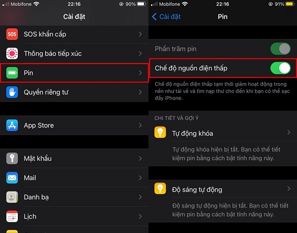 Một cách cũng hiệu quả không kém trong việc tăng thời lượng pin cho iPhone là chế độ nguồn điện thấp. Chế độ này được tích hợp cho iPhone từ bản cập nhật của iOS 9, giúp các iFan tiết kiệm pin khá nhiều. Khi chế độ nguồn điện thấp được bật, thời lượng sử dụng iPhone có thể tăng lên đến 40% so với thông thường. Đừng bỏ qua tính năng hữu ích này bằng cách vào Cài đặt -> Pin và bật nó lên nhé.