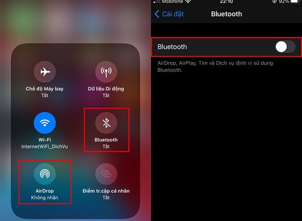 Tắt Bluetooth, AirDrop khi không dùng đến