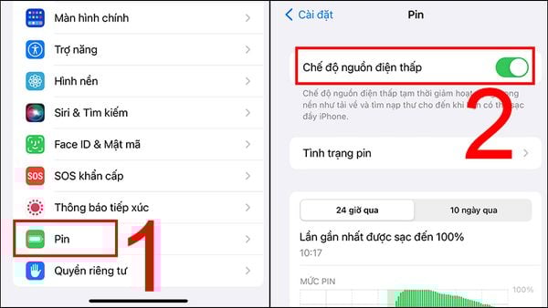 Để cài đặt tính năng này, bạn vào Cài đặt → Lướt xuống và chọn vào mục Pin → bật Chế độ nguồn điện thấp.