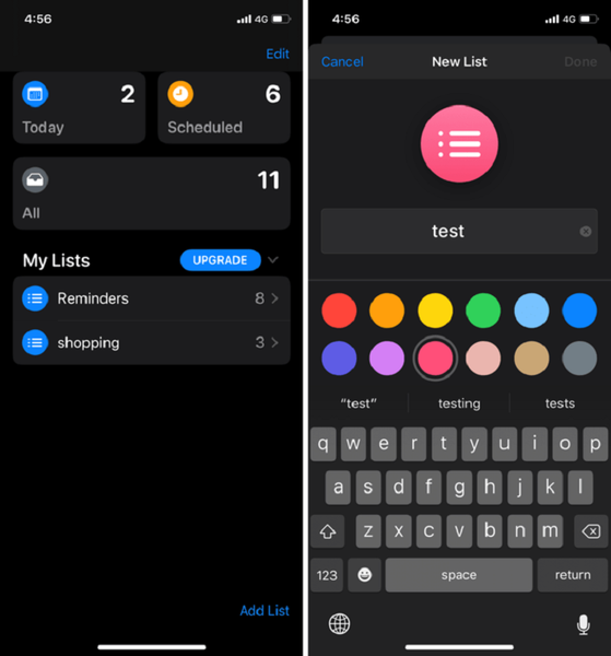 Nếu bạn có nhiều lời nhắc liên quan đến một chủ đề cụ thể, bạn có thể nhóm chúng thành một danh sách. Để tạo danh sách mới, bạn chọn Thêm danh sách “Add list” ở dưới cùng bên phải giao diện. Một menu hiện ra yêu cầu bạn đặt tên cho danh sách và đặt một biểu tượng cụ thể. Tùy theo ý thích màu sắc mà bạn gán cho công việc bạn đang lên danh sách. Bây giờ việc cần làm là nhập nội dung cho danh sách, nếu bạn muốn thêm vị trí hay thời gian hãy nhấn chọn biểu tượng “i” kế bên phải để có thể chỉnh sửa.
