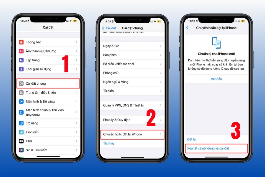 Khôi phục cài đặt gốc là phương pháp cuối cùng để khắc phục lỗi không nhận SIM, nhưng hãy lưu ý rằng điều này sẽ xóa toàn bộ dữ liệu trên iPhone. Trước khi thực hiện, bạn nên sao lưu dữ liệu quan trọng qua iCloud hoặc iTunes và sau đó áp dụng các bước như sau: