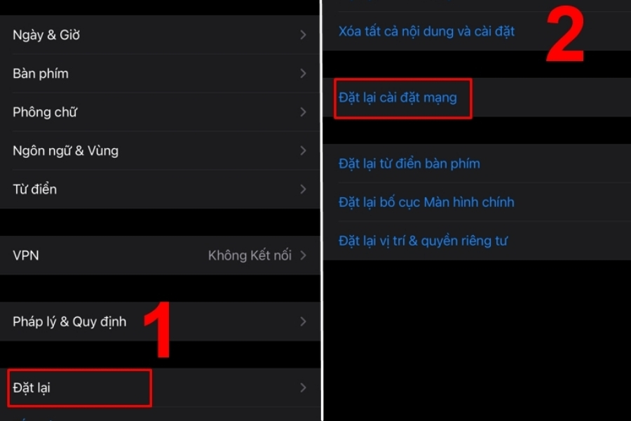 Nếu các phương pháp trước không hiệu quả, bạn có thể thử khôi phục cài đặt mạng để giải quyết tình trạng điện thoại iPhone không nhận SIM. Việc này sẽ làm mới các cài đặt mạng Wi-Fi, dữ liệu di động và Bluetooth, giúp kết nối mạng ổn định hơn.