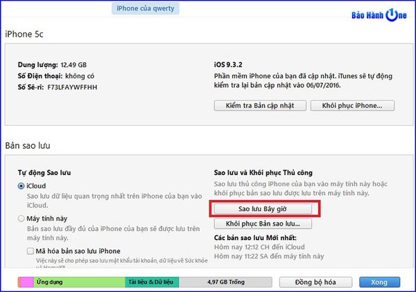 - Bước 1: Kết nối iPhone với iTunes trên máy tính và back up dữ liệu