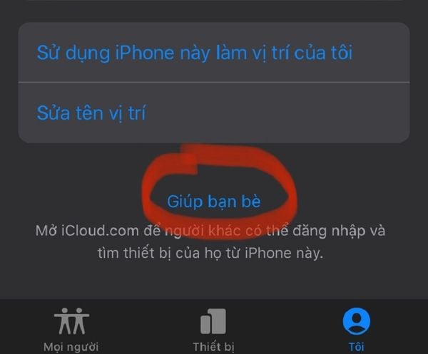- Mở ứng dụng Tìm trên điện thoại của bạn bè hoặc người thân