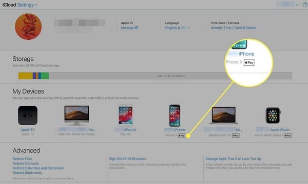 - Cuộn xuống danh sách thiết bị đã đăng nhập vào iCloud cùng với tên người dùng và mật khẩu ID Apple, sau đó chọn một thiết bị mong muốn