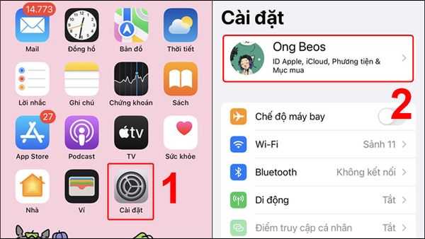 Mở "Cài đặt" → Chọn tài khoản ID trên điện thoại