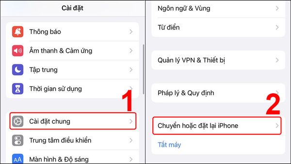 Chọn mục "Cài đặt chung" → Chọn mục "Chuyển hoặc đặt lại iPhone"