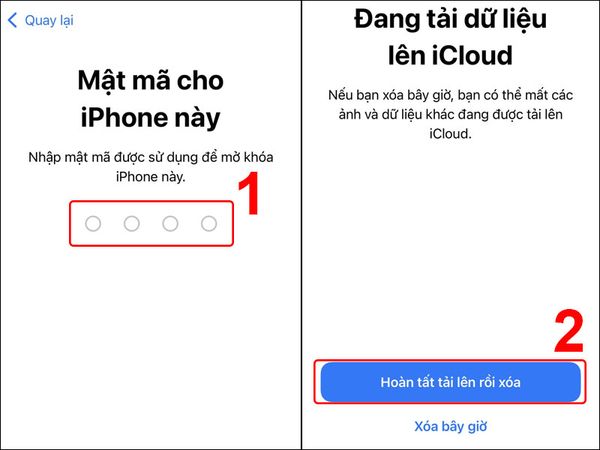 Nhập mật khẩu của điện thoại → Chọn "Hoàn tất tải lên rồi xóa"
