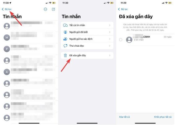 Khôi phục tin nhắn bằng tính năng Recently Deleted