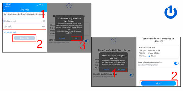 Bước 3: Nhấn vào “Cho phép” để Zalo thông báo cho bạn → Tiếp tục nhấn vào “Đồng ý” để khổi phục lại các tin nhắn