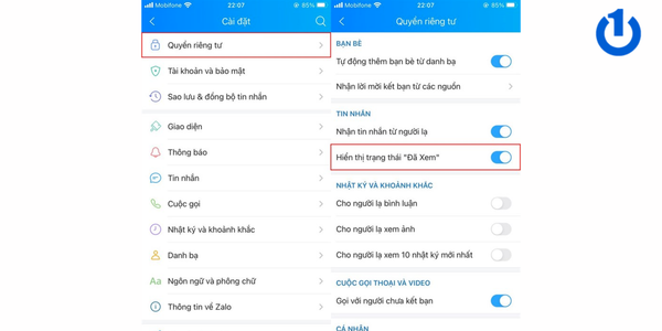 Vào Cài đặt trên Zalo → “Quyền riêng tư” → Tắt “Hiển thị trạng thái đã xem”
