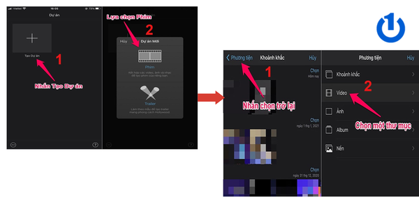 Bước 2: Mở ứng dụng iMovie → Nhấn vào “Tạo dự án” → Sau đó chọn “Phim”