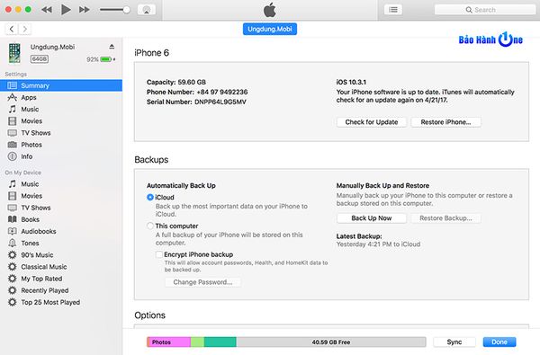 Sau khi khởi động lại iphone mà vẫn không khắc phục được tình trạng trên, chúng ta nên restore (làm mới lại điện thoại) bằng cách: