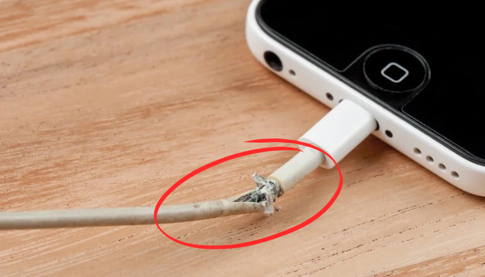 Nếu cáp sạc bị hư, đứt gãy hoặc cắm lỏng, nó có thể gây ra nhiễu điện, làm cảm ứng hoạt động không ổn định, bạn nên thay một cáp sạc khác hoặc ngưng sạc để màn hình iPhone ổn định lại.