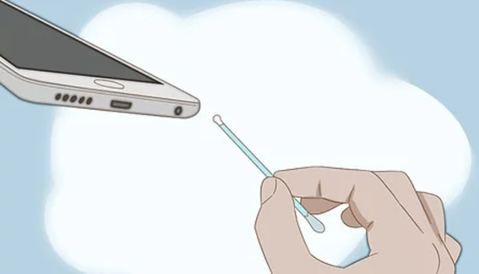 Bước 4: Nếu loa bị bám bẩn nhiều, có thể thấm nhẹ cồn isopropyl vào bông tăm, lau nhẹ nhàng quanh lưới loa để loại bỏ cặn bẩn.