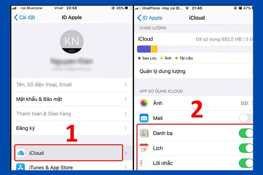 Để giải quyết tình trạng danh bạ iPhone bị ẩn, bạn hãy thử ngay cách tắt rồi bật lại Danh bạ của iCloud. Cách thực hiện vô cùng đơn giản, bạn hãy lần lượt làm theo các bước sau: