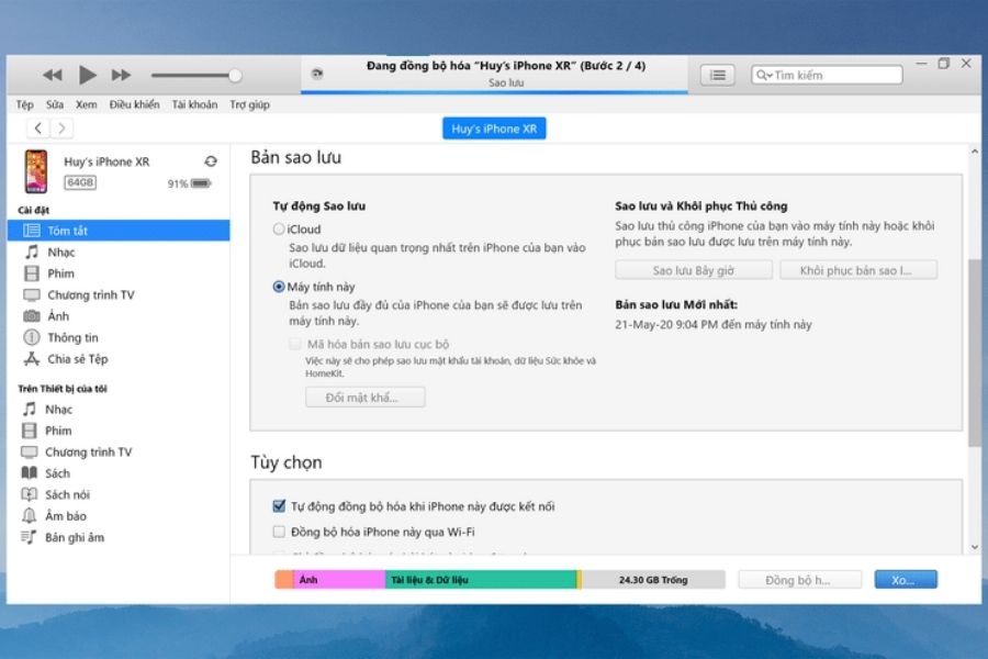 Cách 4: Phục hồi danh bạ từ iTunes