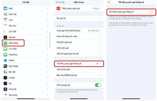 Bước 2: Tắt bỏ tính năng Tắt tiếng cuộc gọi không rõ