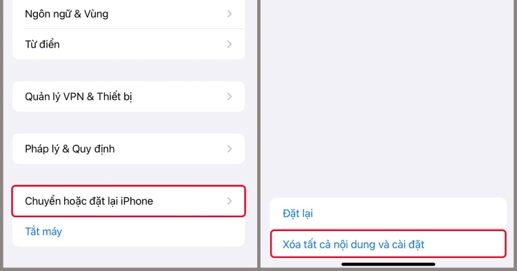 Hệ thống sẽ yêu cầu bạn nhập mật khẩu để xác nhận. Sau đó, bạn sẽ được cảnh báo trước tất cả dữ liệu sẽ bị xóa. Sau khi hoàn tất, iPhone sẽ tự động khởi động lại và trở về trạng thái ban đầu như mới sản xuất.
