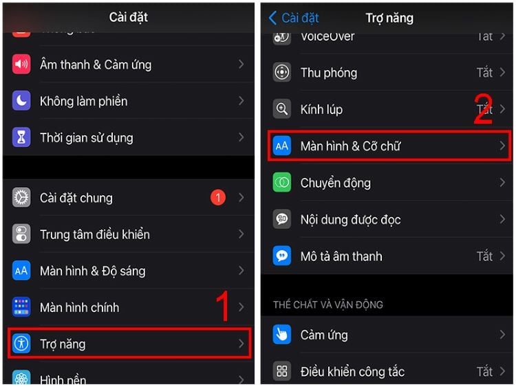 Bước 2: Trong mục Trợ năng, chọn Màn hình & Cỡ chữ (Display & Text Size).