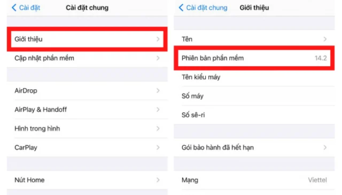 Trước khi nâng cấp, bạn check xem iPhone của bạn có đang chạy phiên bản iOS mới nhất không bằng cách vào Cài đặt, chọn Cài đặt chung, đi đến mục Giới thiệu và xem phiên bản iOS hiện tại của máy.