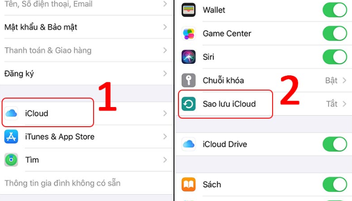 Việc thứ 2 cần làm là sao lưu dữ liệu, để phòng trường hợp lỗi khi cập nhật, bạn vào Cài đặt và nhấn vào Tên Apple ID chọn iCloud và Sao lưu iCloud, sau đó chọn Sao lưu ngay bây giờ.