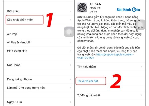 - Bước 3: Nếu có bản cập nhật iOS mới, hãy nhấn vào Tải xuống và cài đặt (Download and Install).