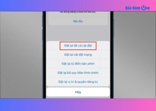 - Bước 3: Nhấn chọn vào mục Đặt lại tất cả cài đặt (Reset all settings).