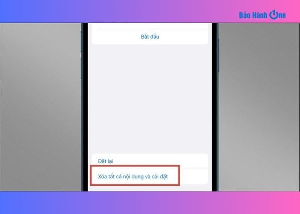 Chọn xóa tất cả nội dung và cài đặt để thực hiện cài đặt gốc