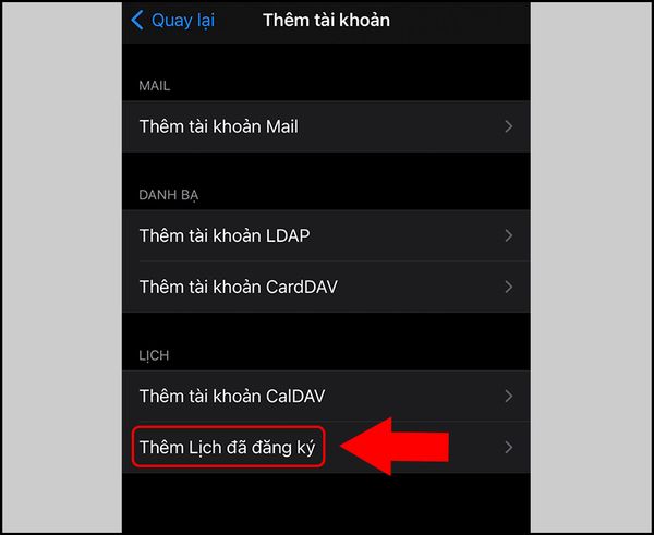 “Thêm lịch đã đăng ký” (Add Subscribed Calendar)