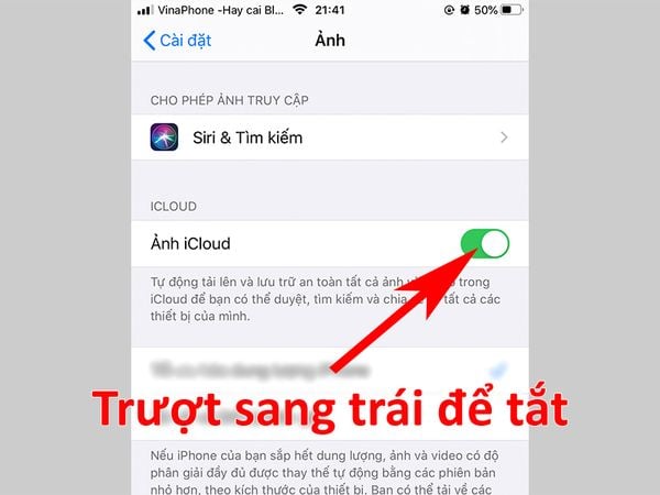 Bước 2: Tắt tính năng Ảnh iCloud bằng cách trượt sang trái