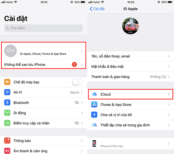 Bước 1: Truy cập Cài đặt -> ID Apple -> Nhấp vào iCloud