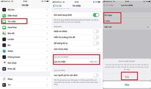 Gửi các tin nhắn trên IDevice sẽ gây ra mất một lượng dung lượng lớn, khiến cho iPhone của bạn hoạt động chậm hơn bình thường. Sau một khoảng thời gian dài sử dụng, nó sẽ trở thành một khối lượng vô cùng lớn. Bạn truy cập Cài đặt -> Tin nhắn -> Lưu tin nhắn -> và chọn trong vòng 30 ngày.