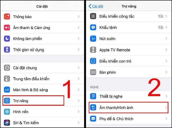 Bước 2: Cuộn xuống Cài đặt chung và chọn Trợ năng. Sau đó bấm vào chọn Âm thanh/Hình ảnh.