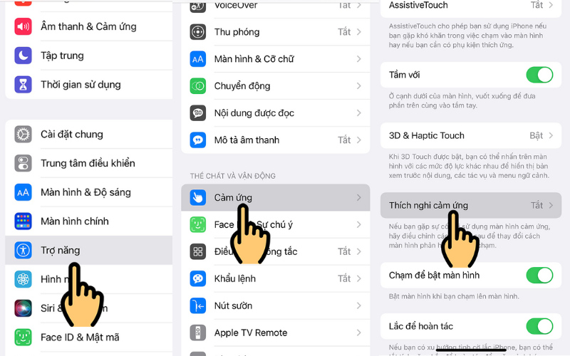 Thử hiệu chỉnh lại màn hình bằng cách vào Cài đặt > Trợ năng > Cảm ứng > Điều chỉnh độ nhạy cảm ứng. Điều này có thể giúp cải thiện tình trạng màn hình trong một số trường hợp.