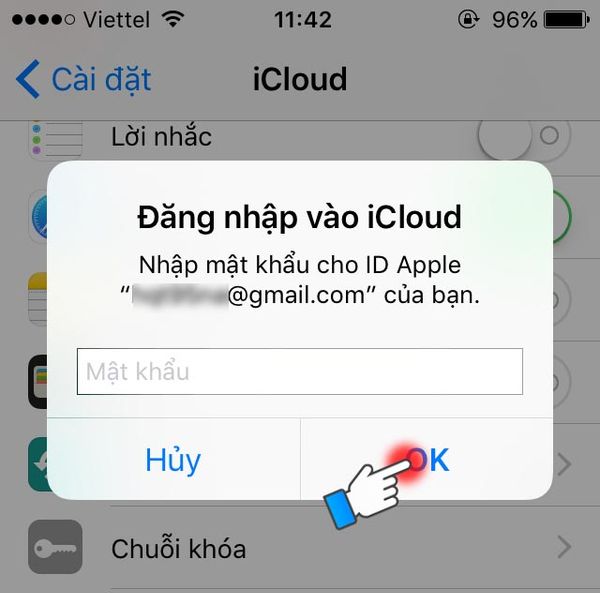 Bước 5: Nếu có mật khẩu để mở khóa vui lòng nhập mật khẩu để xác nhận thay đổi mật khẩu id apple của bạn.