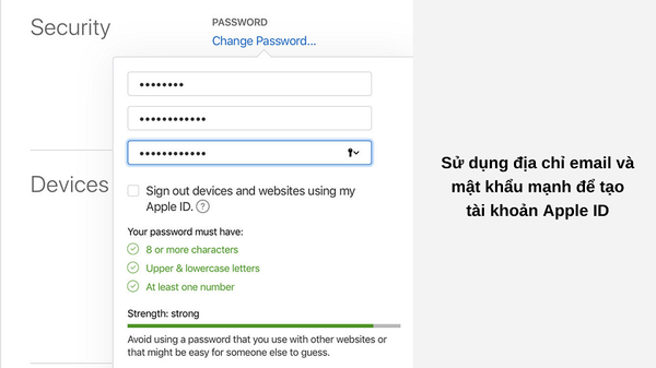 Hãy đặt mật khẩu mạnh nếu bạn có id apple (hoặc bất kỳ tài khoản nào) đây là điều bắt buộc. Nguyên nhân là do mật khẩu yếu rất dễ bị hack tài khoản và đánh cắp thông tin. Vì vậy, hãy tạo một mật khẩu phức tạp và chỉ ghi nhớ mật khẩu đó cho riêng bạn để giữ an toàn cho id apple của bạn.