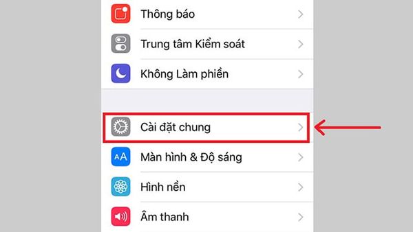 Truy cập vào cài đặt, click "Cài đặt chung"