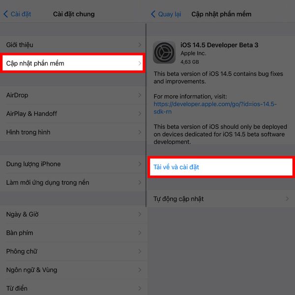 - Rồi nhấp vào Tải về và cài đặt -> Nhập mật mã để tiếp tục cập nhật