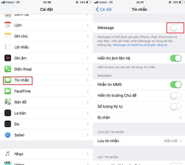 Kích hoạt cả hai chế độ nhận tin nhắn iMessage và SMS