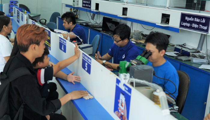 Khách hàng được quyền quan sát toàn bộ quá trình sửa chữa iPhone, đảm bảo không xảy ra tình trạng tráo linh kiện.