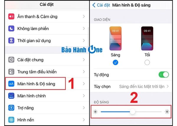 Đầu tiên vào phần Cài đặt → Tiếp đến chọn mục Màn hình & độ sáng → Tại đây bạn tùy chỉnh thanh kéo phải/trái để tăng hoặc giảm độ sáng màn hình. Vậy là đã xong rồi!
