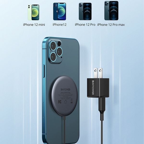 Có thể nói với dòng sản phẩm bộ sạc không dây từ tính của RAVPower RP-WC012 được nhiều người khuyên dùng cho iPhone đặc biệt là tương thích cả cho dòng iPhone 12. Miếng đệm từ tính tự động căn chỉnh khi bạn sử dụng điện thoại trần hoặc ốp lưng có nam châm kiểu MagSafe và mặc dù chậm hơn một chút so với bộ sạc của MagSafe đến từ Apple.