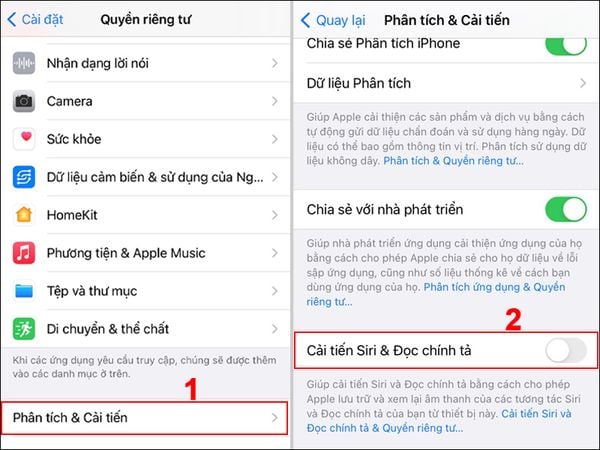 - Bước 3: Xóa Lịch sử & Chính tả của Siri.