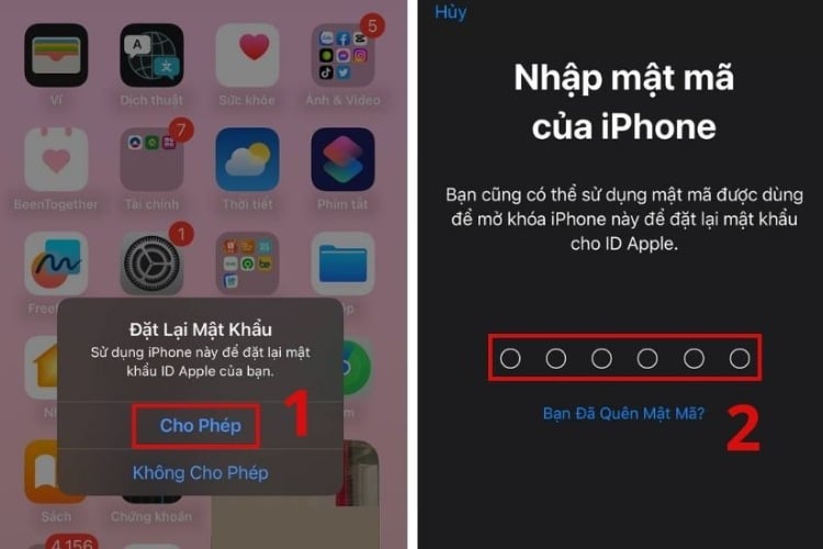 Bước 3: Trên điện thoại của bạn sẽ hiện thông báo “Đặt lại mật khẩu”. Nhấn chọn vào “Cho phép” để hệ thống tiếp tục quá trình đặt lại mật khẩu.