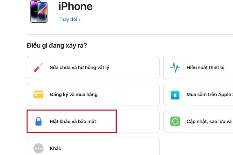 Bước 3: Tiếp tục nhấn chọn vào “Mật khẩu và bảo mật” để Apple xác định vấn đề liên quan đến tài khoản iCloud.