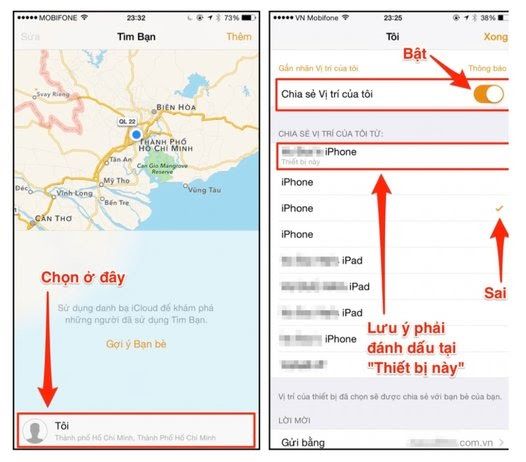 Cách cài định vị giữa hai điện thoại hệ điều hành iOS