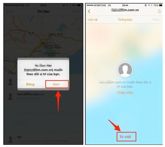 - Bước 4: Mở ứng dụng Find my friend trên thiết bị đích và chọn "Chấp nhận". Điện thoại của bạn cũng sẽ nhận một yêu cầu theo dõi vị trí ngược lại.