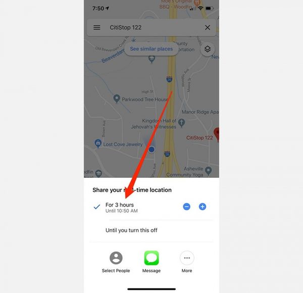 - Bước 4: Chọn thời gian chia sẻ vị trí. Nếu bạn muốn xem định vị giữa hai điện thoại liên tục, hãy chọn "Cho đến khi tắt".