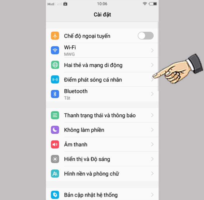 Bước 1: Bạn vào menu “Cài đặt” > kéo xuống và chọn mục “Điểm phát sóng cá nhân”.